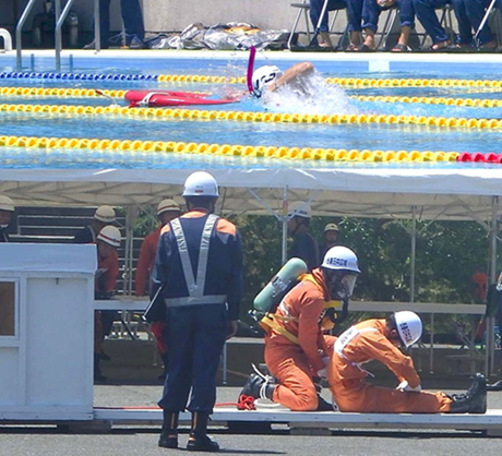 まさしく猛暑と言われている今年も東海3県の消防署が消防救助技術を競いに三重県消防学校に集いました。全員真剣なまなざしで一秒でも早く、正確に救助を行うことを目標に切磋琢磨しました。