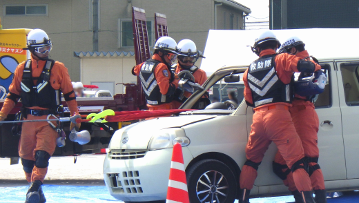 消防署の救助隊と合同で車両に閉じ込められた人を救助する想定訓練を行いました。